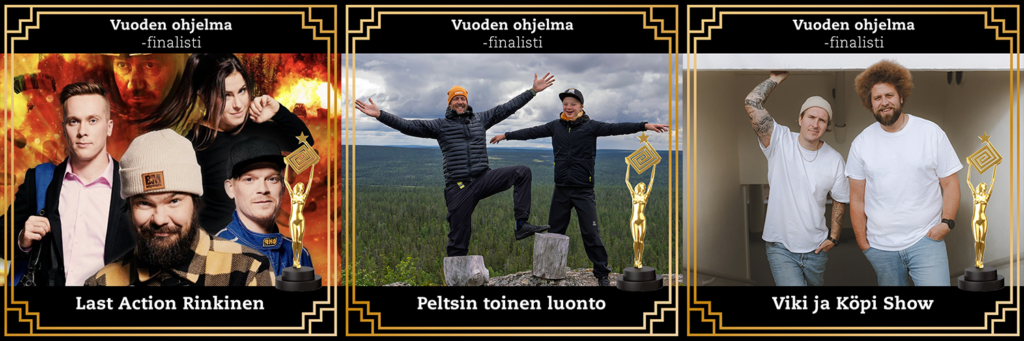 Vuoden ohjelma -finalistit: Last Action Rinkinen, Peltsin toinen luonto sekä Viki ja Köpi Show.